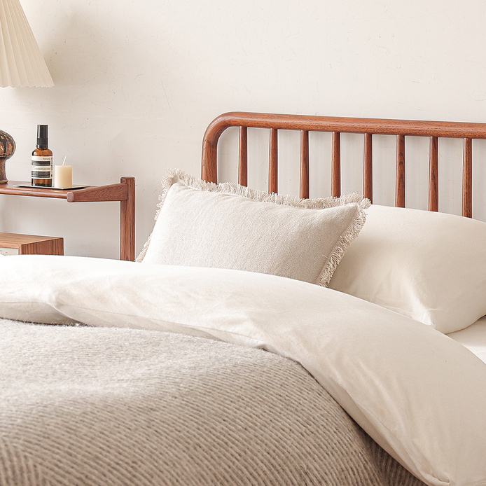 これにより、ベッド全体で統一感が生まれ、美しく安定した見心地を実現しています。