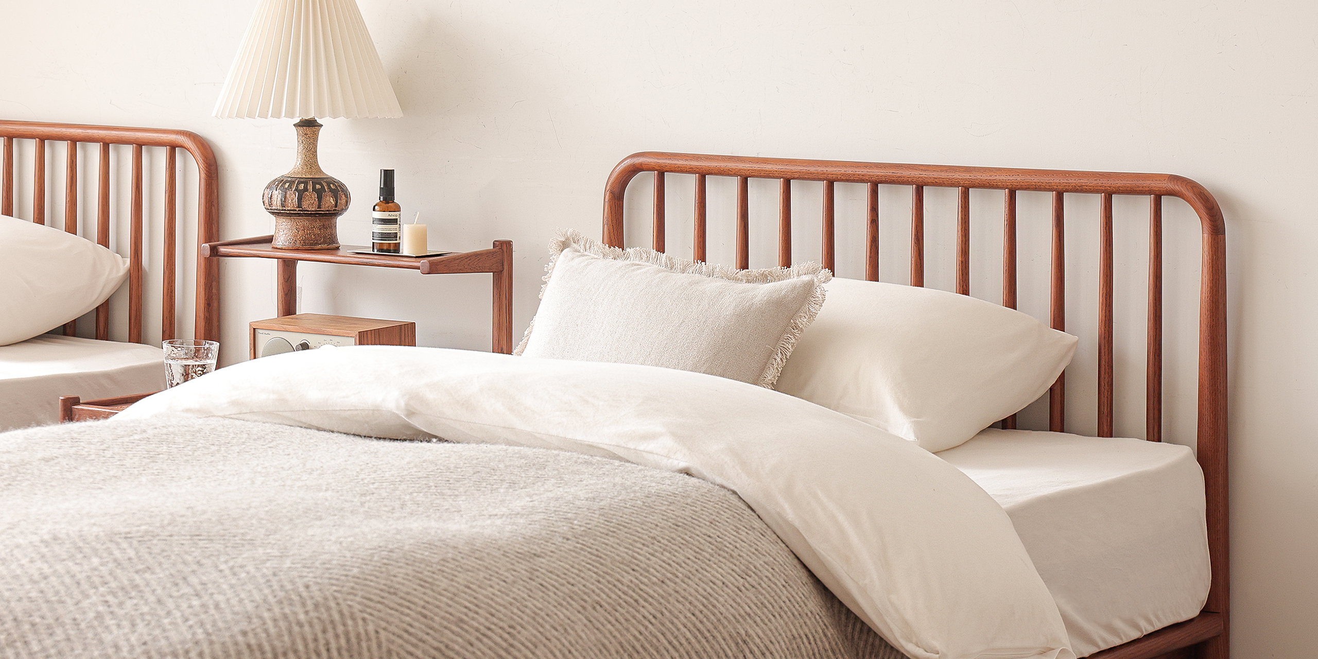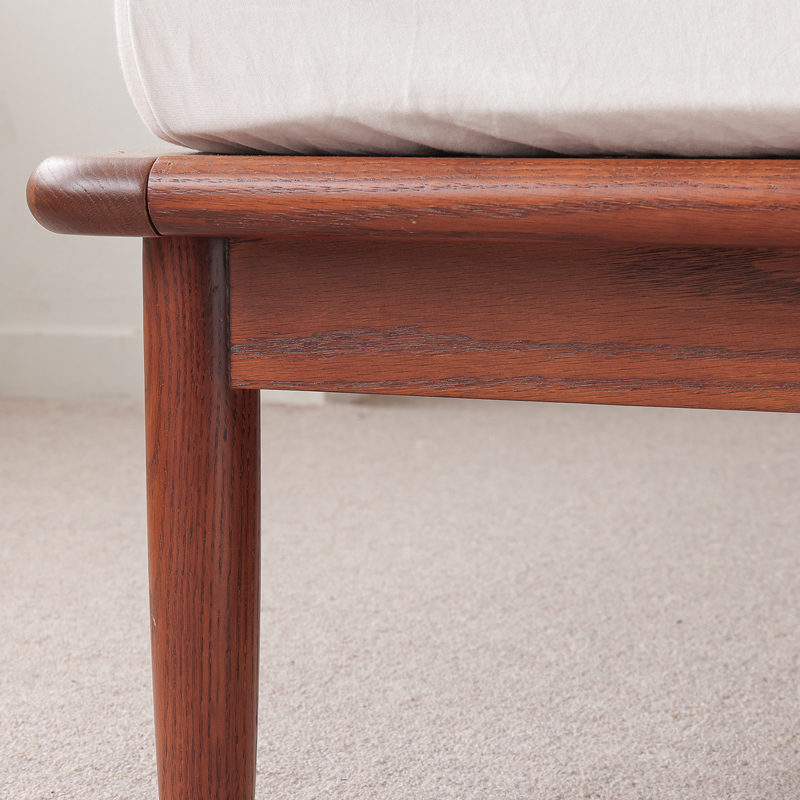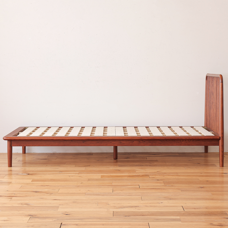 オーク材を贅沢に使い、なめらかなカーブを削り出すことで、北欧黄金期のヴィンテージベッドと変わらぬ美しさを作り上げました。