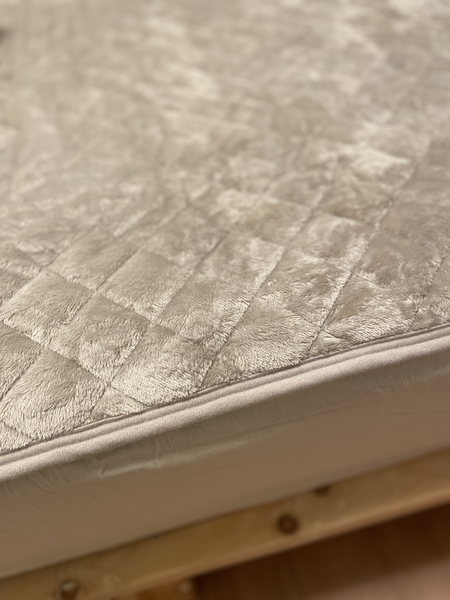 敷きパッドは、ベッドシーツを被せたマットレスの上からそのまま取り付けるだけなので扱いがとても簡単。ただマットレスに一枚乗せるだけで、体とマットレスの間にあるクッションとしての役割を果たし、柔らかさが加わるので、より快適な睡眠を実現してくれるんです。