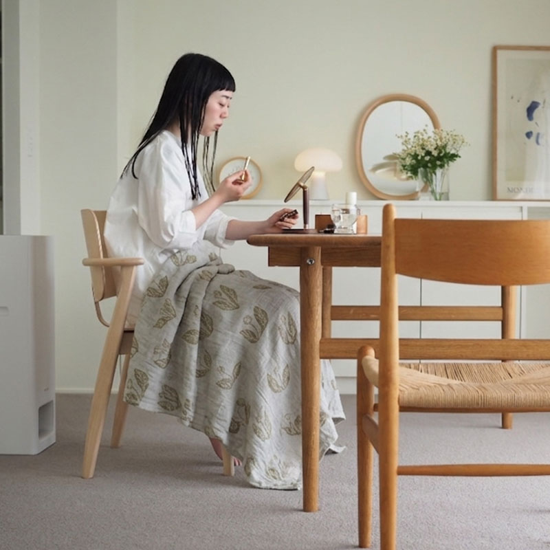 日々の気分に寄り添いながら、気軽に見え方を変えられるのも、この一枚ならでは。自由なアクセントとして、暮らしの中で、気負わず楽しんでいただければと思います。