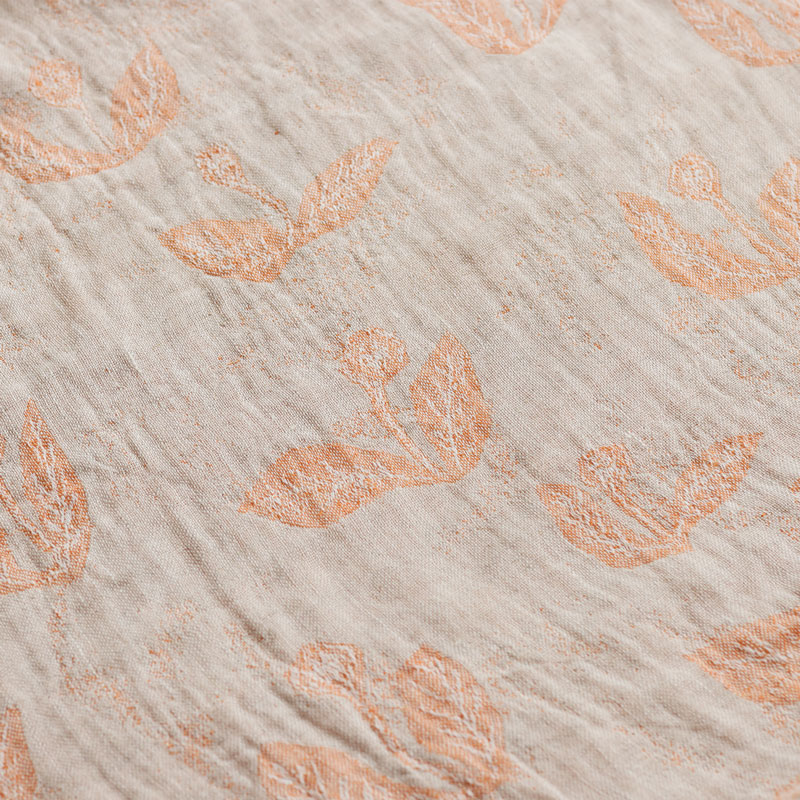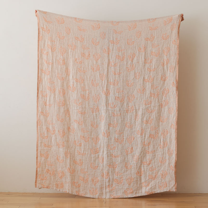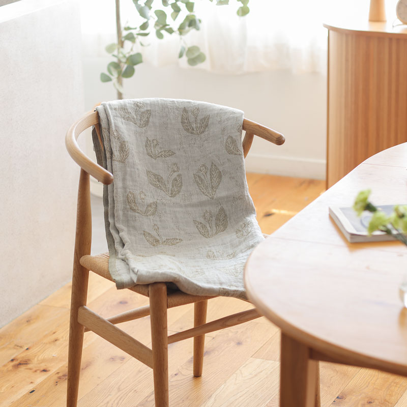 その繊細な図案を、リネンのやわらかな風合いとともに、丁寧な織りで表現しました。