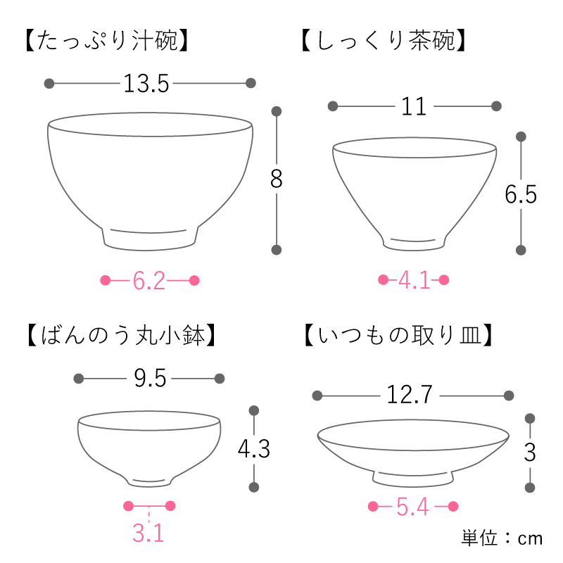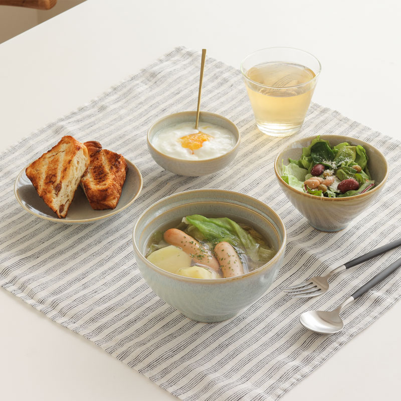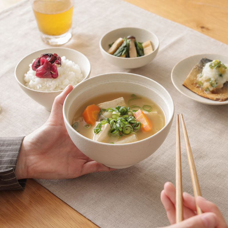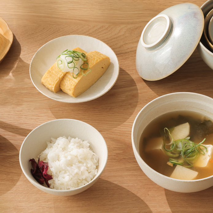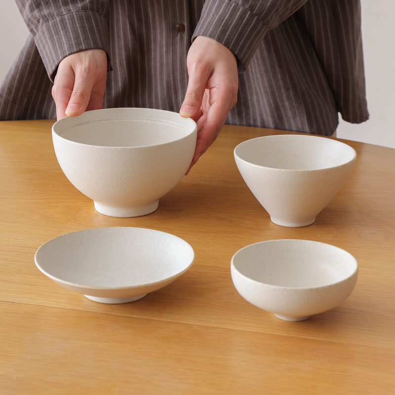 「汁碗、茶碗、小鉢、取り皿」の組み合わせは、毎日の食卓で大活躍する顔ぶれ。