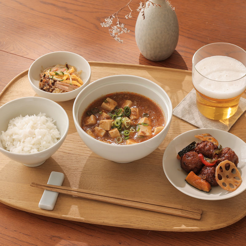 「主菜はたっぷり盛り付けたい!」という方は、メインの大皿を真ん中に置いて、入れ子碗セットを組み合わせていただくのがおすすめ。