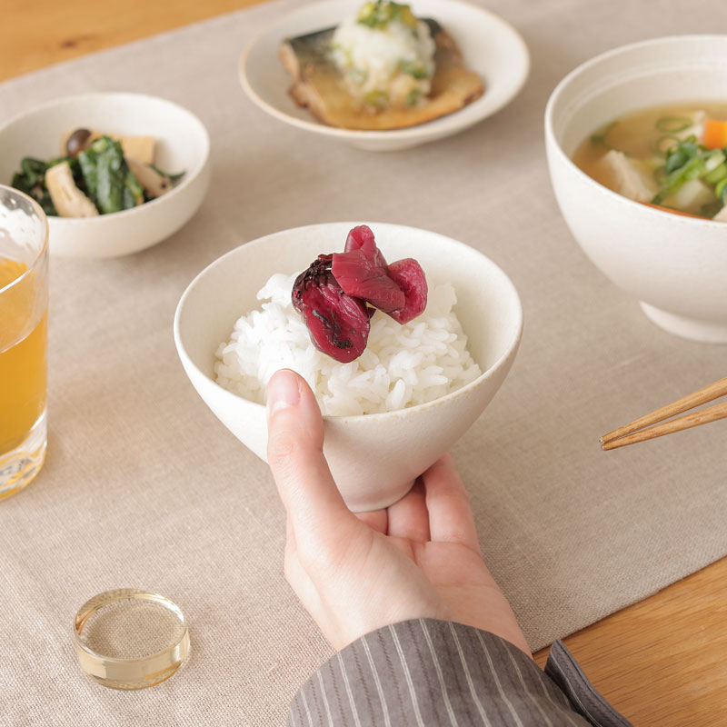 たしかにご飯がたっぷり盛られたお茶碗は、見ていてうれしくなるもの。「腹八分目」の健康管理が自然と叶うのも、こぶりなうつわのいいところです。