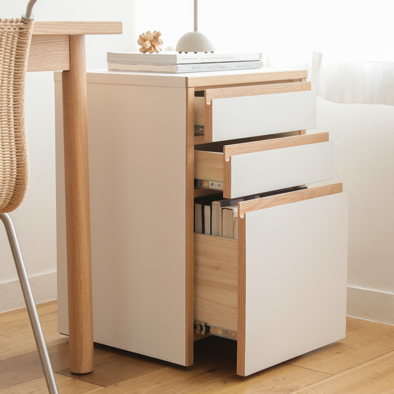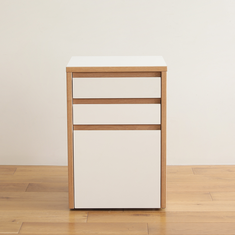 デスクワゴン「CALN」には、3つの引き出し収納を付けています。