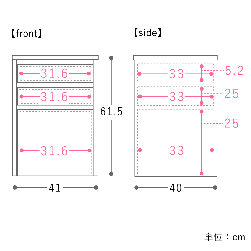 下段:幅 31.6cm×奥行 33cm×高さ 25cm
