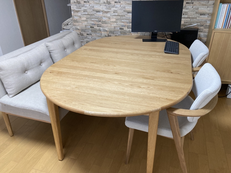 普段使いには110cmの円形でゆったりと十分だけど、家族や友人が集まる時には延長して使えるforkに目がとまりました。