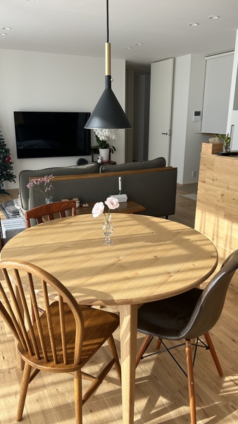 わが家は息子と2人暮らしで、リビングダイニングを柔らかく彩ってくれる、円形のダイニングテーブルを探していました。