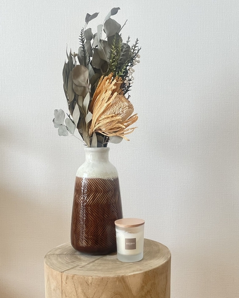 かすれた風合いのドライフラワーと相性よく馴染み、あたたかみのあるディスプレイに仕上がります。