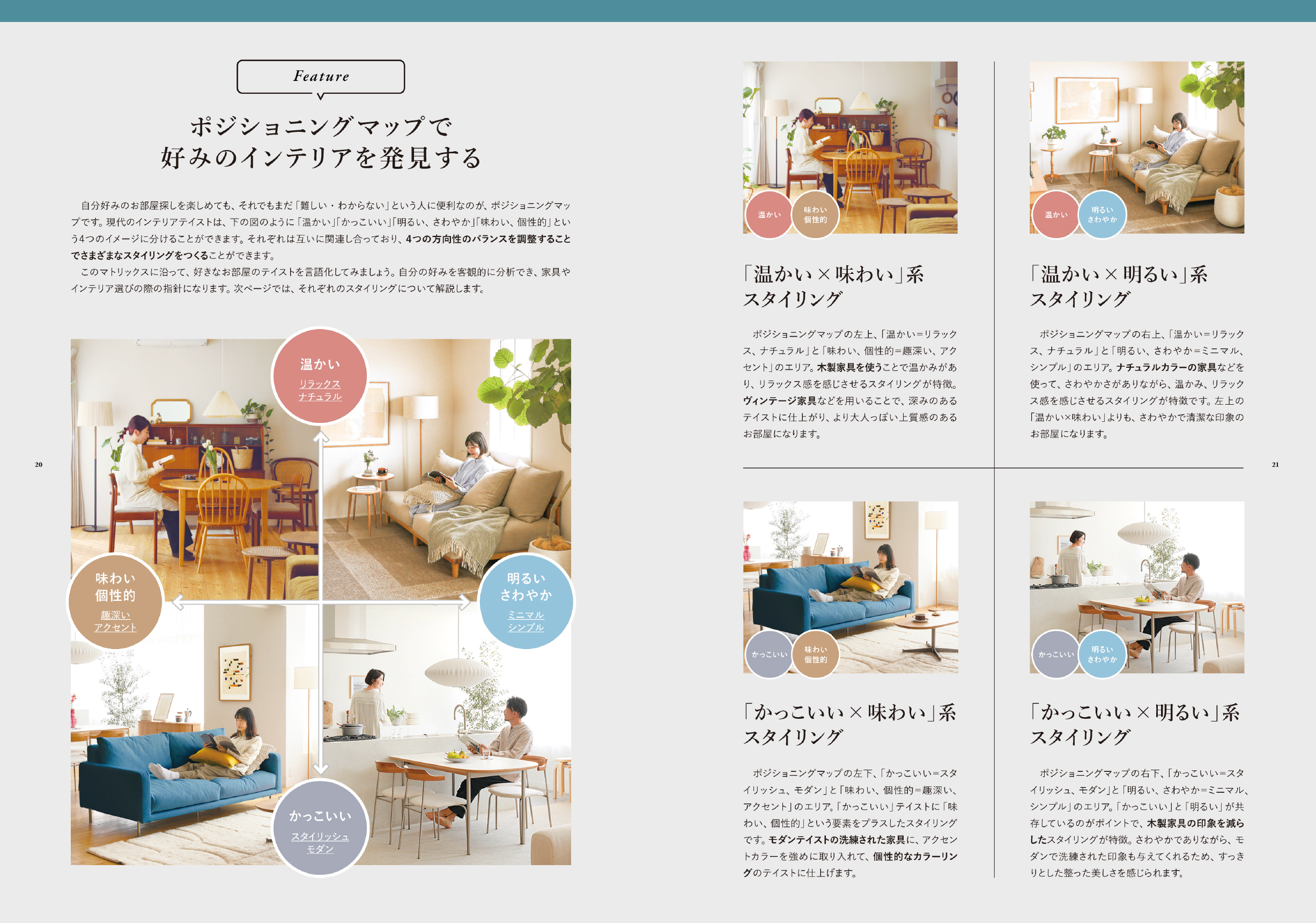 お部屋作りは、はじめの一歩が肝心です。まずは、自分の好みを見つける方法や考え方を知りましょう。小難しさはなく分かりやすい内容ですが、大きな指針となってくれるはずです。すでに好みを自覚しているという方にとっても、改めて自身のスタイルを客観的に見つめ直すきっかけになる章です。