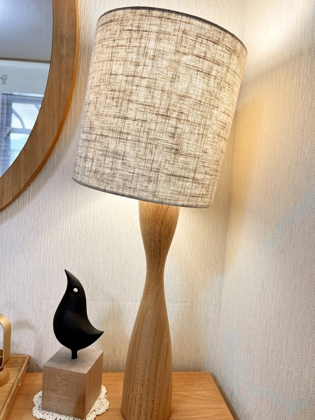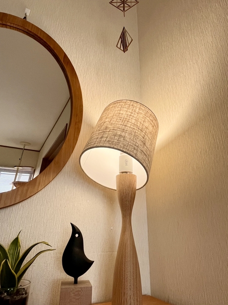 ファブリックのシェードと、無垢のウッドベースを組み合わせた「テーブルライト COPYING(コピング)」は、あたたかな雰囲気とスタイリッシュさを兼ね備えたデザインです。