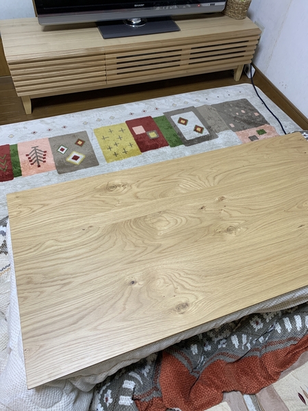 こたつは天板にも熱が加わるために、無垢の天板は反りや割れが出る可能性が高く、使えません。