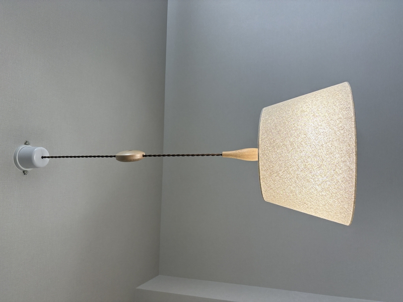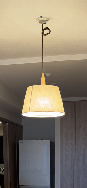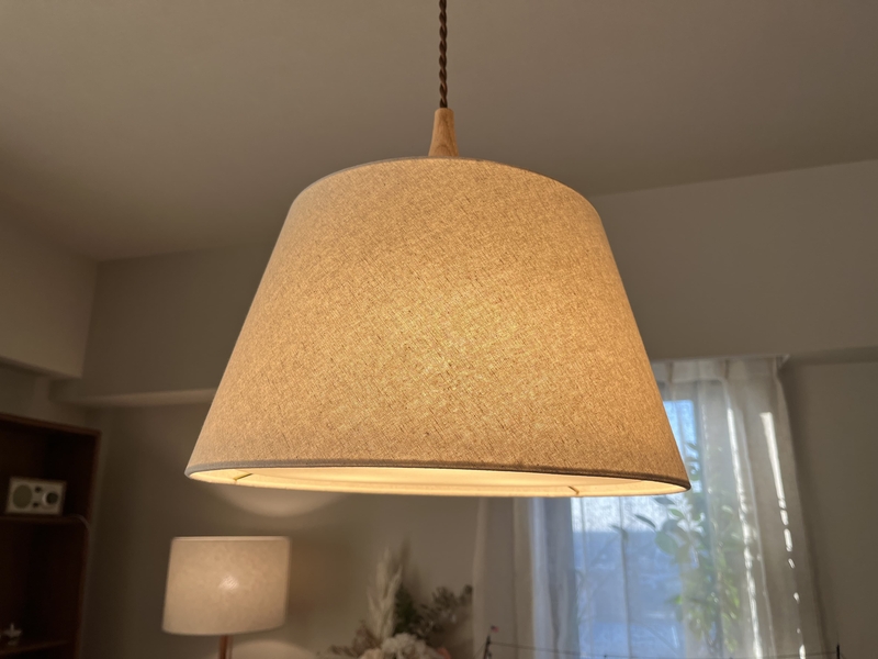 とてもベーシックな形状で、トラディショナルともいえる今回のペンダントライトですが、素敵な生地を採用できたことで、柔らかな光を与えてくれました。
