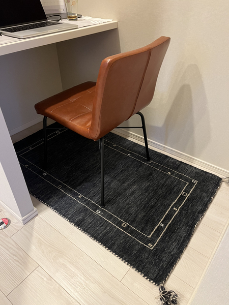 ぽっかりとした場所に、1枚敷くことで寂しさも解消され、シンプルなお部屋に複雑性がプラスされました。