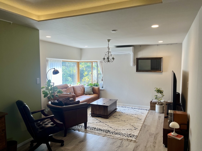 テーブルを囲んだり、大人数でのパーティーでも余裕たっぷり。ラグの上で思いっきり寝転がったり、お子様の遊び場にもぴったりです。