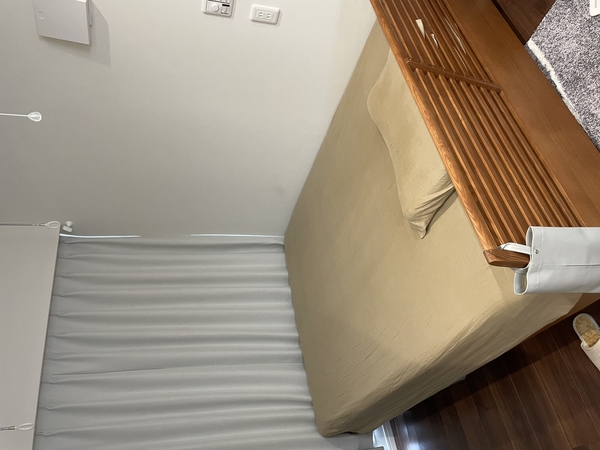 、床も白めのシンプルな部屋に、この水色はとても合っていました!