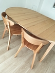 椅子はどうしても長時間座り、腰が悪いので飛騨家具さんのSEOTO-EX(ホワイトオーク材、WOカラー、セイブルIV)を合わせましたが、高さも雰囲気も違和感なくダイニングテーブルに馴染んでくれましたし、リセノさんのダイニングテーブルにぴったり納まります。