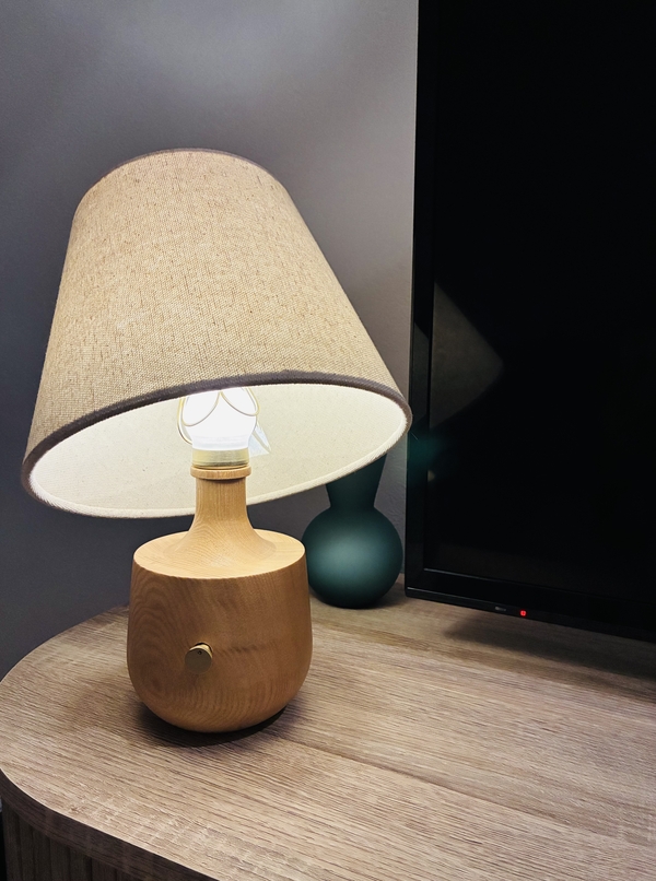 リビングの多灯照明として、フロアライトDeIiciaと合わせて購入。布製シェードもしっかり厚みのある生地で、支柱の無垢材も小ぶりながらどっしりとした重さがあり、ダイヤルを回す調光も好みの明るさにできて言うことなしです!成人のお祝いに娘にもプレゼントしたいと思います!