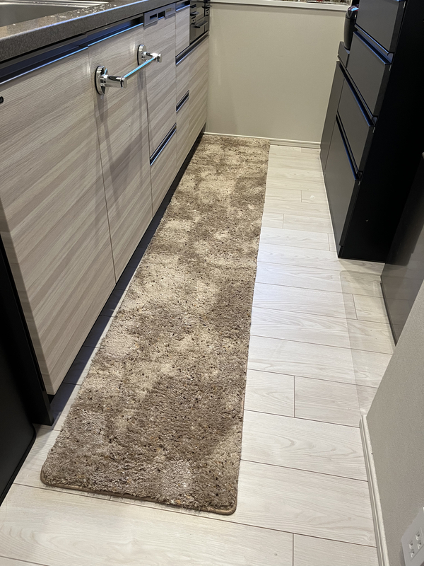リビングにラグマットを迎えたことで、お気に入りとの暮らしに幸せを感じたことがきっかけで、キッチンもそんな空間にしたいと思い購入しました。