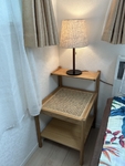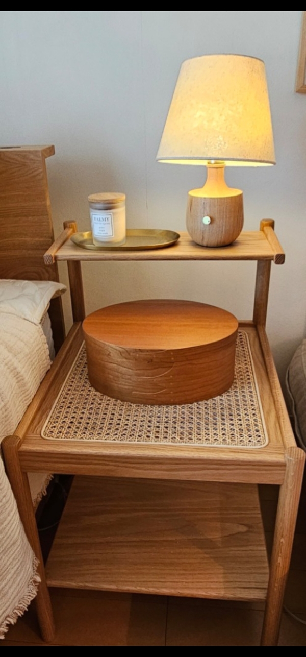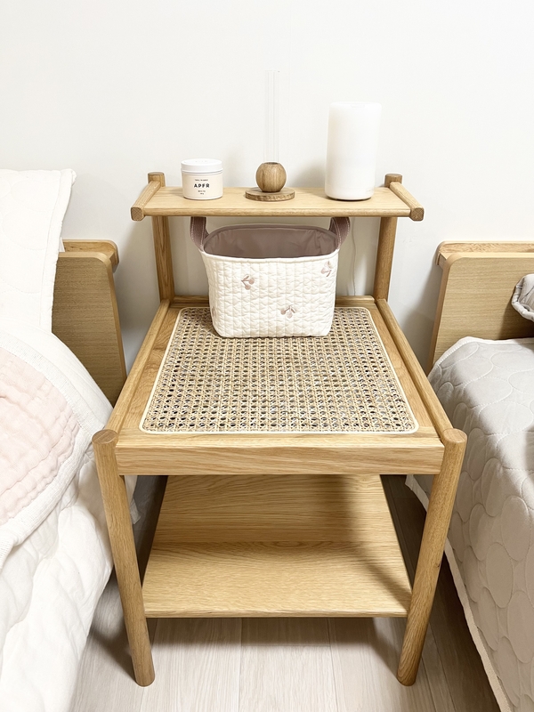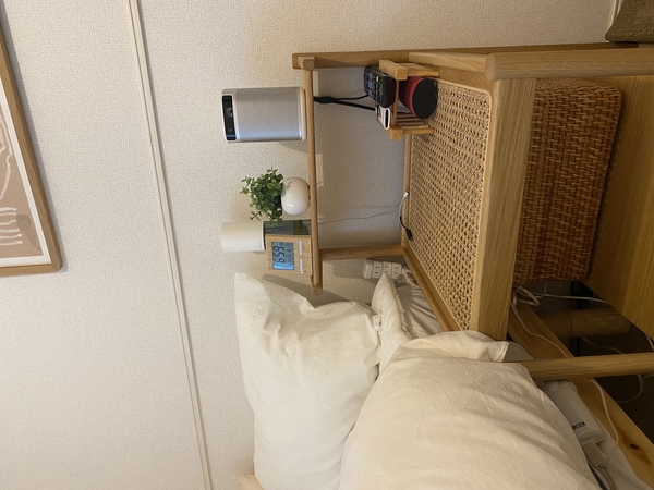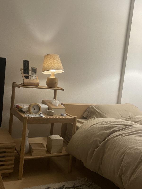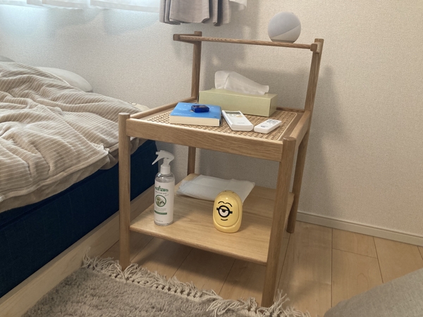 寝室を一新するためにベッドと合わせて購入。木の暖かい素材感と、ちょうどいいサイズ感&機能性に惹かれて購入しました。
