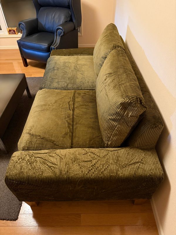 福岡店で、3人掛けソファー folk/BRのコーデュロイ生地のオリーブを選びました。