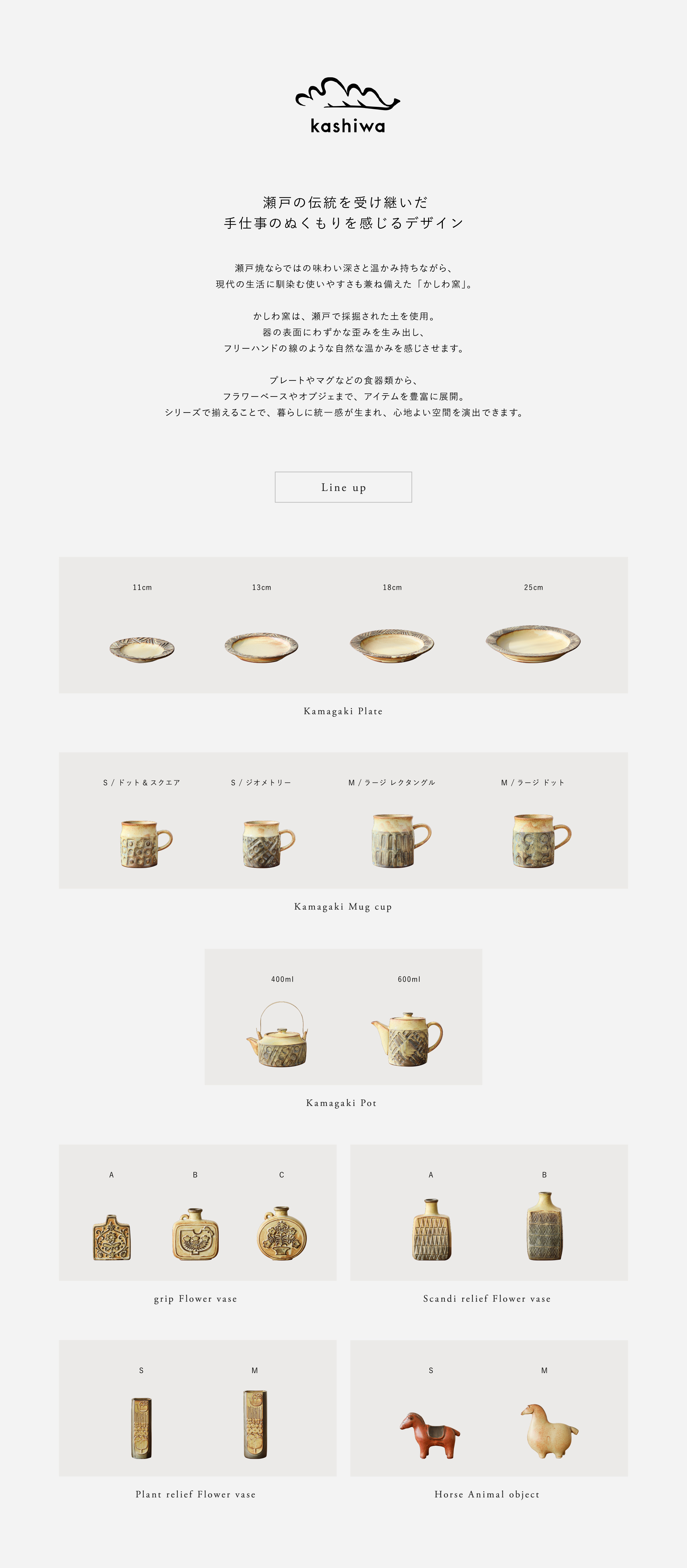 瀬戸焼ならではの味わい深さと温かみを持ちながら、現代の生活に馴染む使いやすさも兼ね備えた「かしわ窯」。シリーズで揃えることで、暮らしに統一感が生まれ、心地よい空間を演出できます。