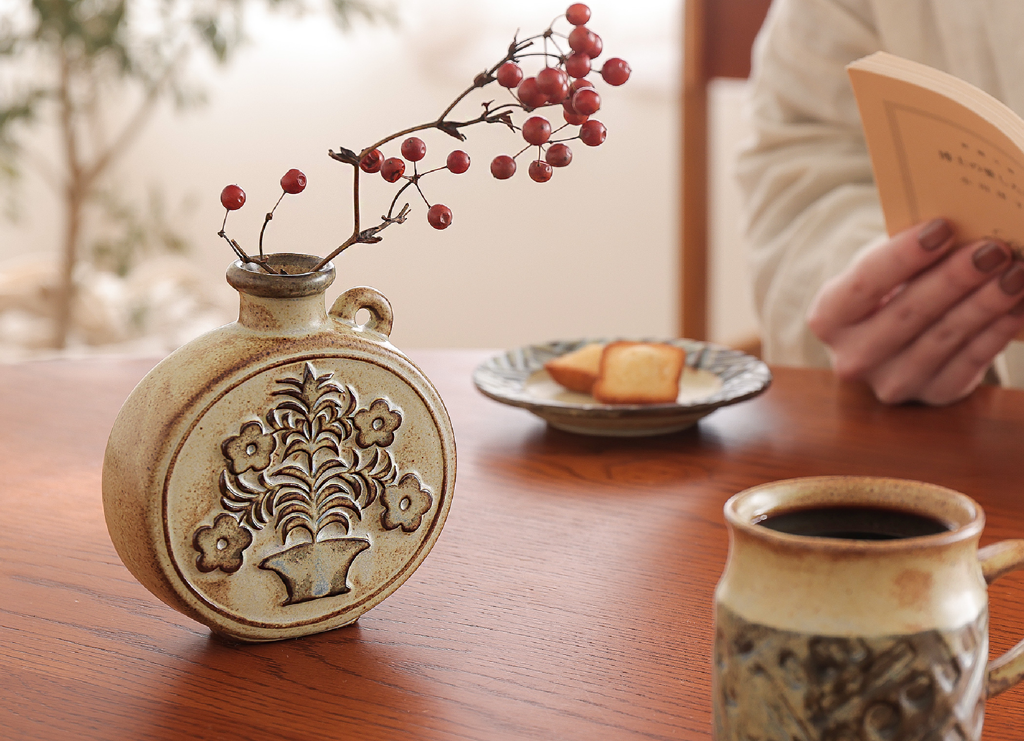利便性の高いストーンウェアを使用した、味わい深い美濃焼の器「Ancient Pottery(エイシェントポタリー)」。まるでアンティークのような趣です。