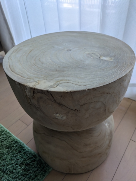 1本の木から作られたサイドテーブルは、木が本来もつたくましさや力強さを感じます。