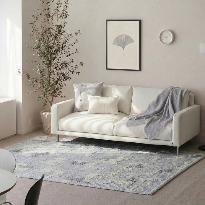 ソファーがシンプルであることで、クッションで色付けしたり、ブランケットをばさっと置くだけで、気分が手軽に変えられる良さもあります。