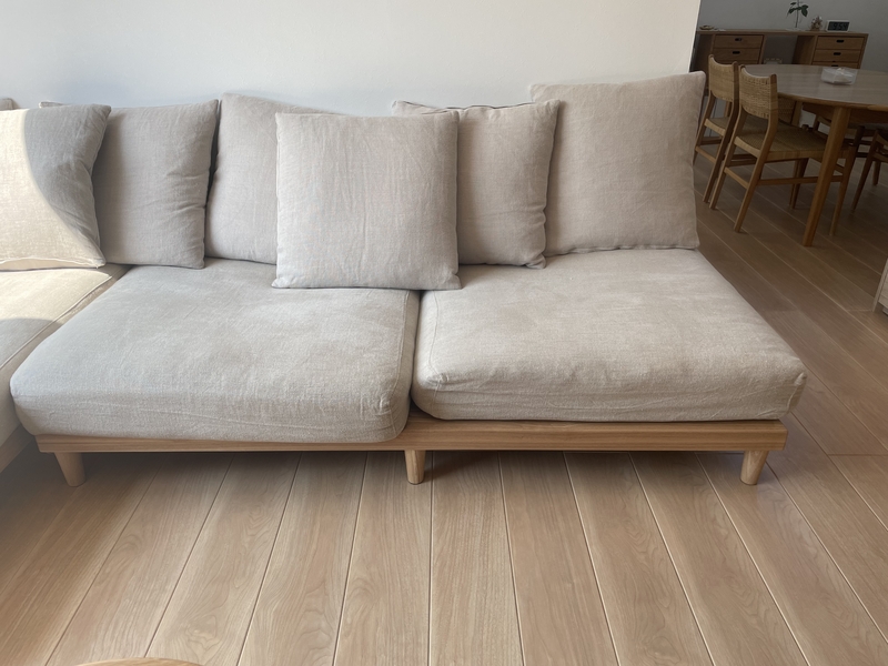 NOANAソファーは、まさにその仕様なので、フェザーながらもコシのある硬めの座り心地です。
