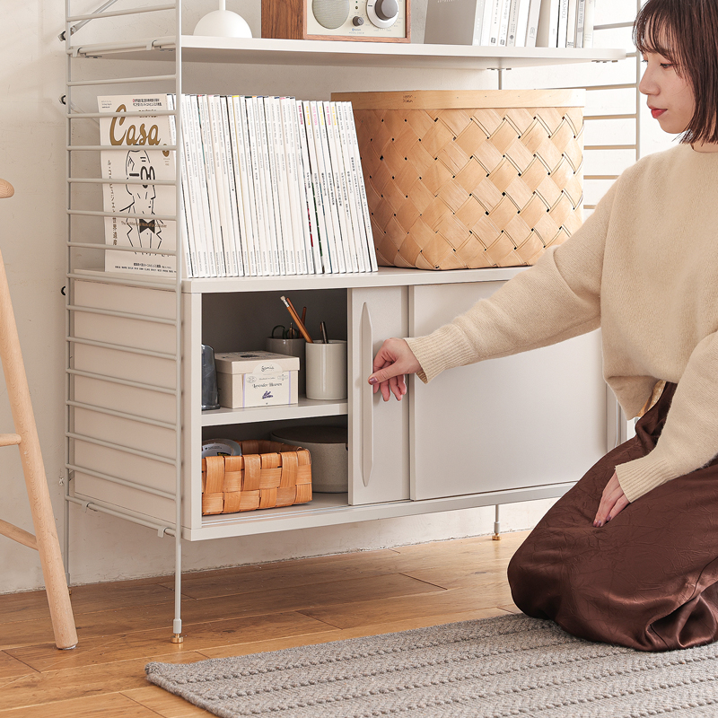 棚やキャビネットの位置を細かく決めることができるので、収納物を限定しません。