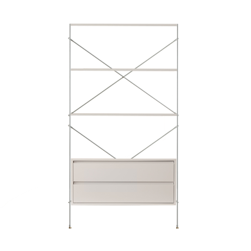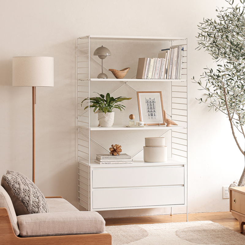 極限まで細くしたアイアンを採用しており、圧迫感を感じさせないフレームが、シャープでスタイリッシュなユニットシェルフを作り上げてくれます。