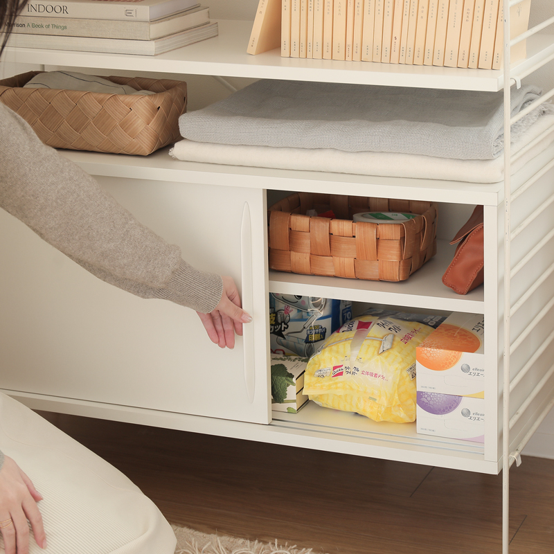棚やキャビネットの位置を細かく決めることができるので、収納物を限定しません。