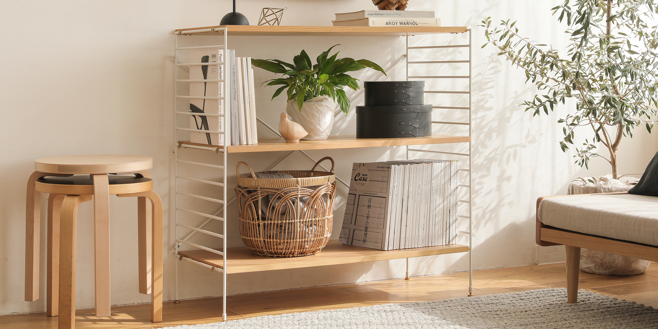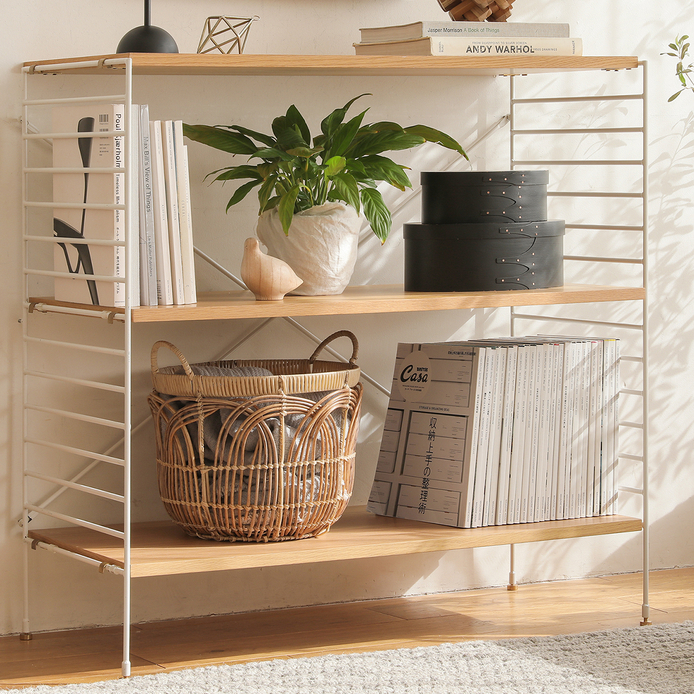極限まで細くしたアイアンを採用しており、圧迫感を感じさせないフレームが、シャープでスタイリッシュなユニットシェルフを作り上げてくれます。