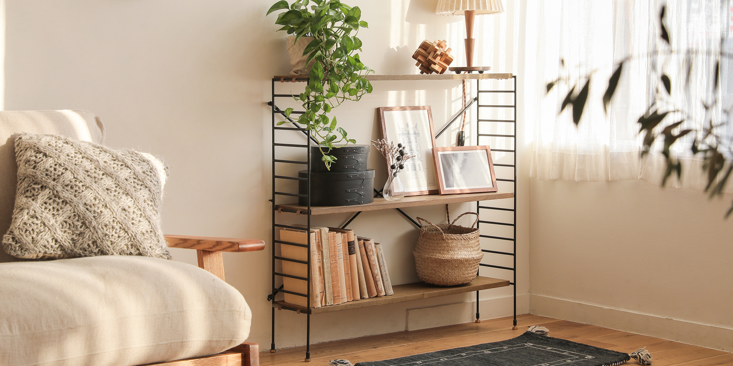 極限まで細くしたアイアンを採用しており、圧迫感を感じさせないフレームが、シャープでスタイリッシュなユニットシェルフを作り上げてくれます。