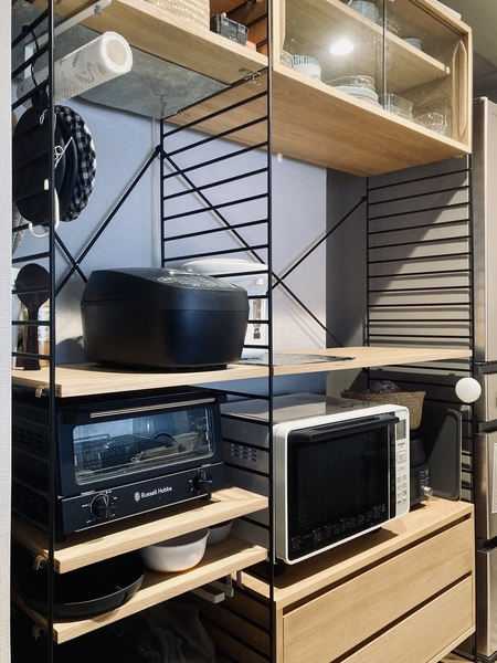 棚やキャビネットの位置を細かく決めることができるので、収納物を限定しません。