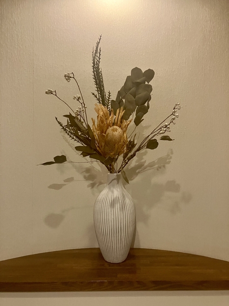 ドライフラワーは、水の必要も、こまめにお花を変える必要もないので、気軽に取り入れられるのがうれしいポイント。「お花を飾るのは、ちょっとハードルが高い」という方にもぴったりです。