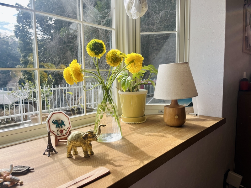 小ぶりなので、デスクやドレッサーの上にちょこんと置くのも素敵です。メイクや作業をするときに、お花が目に入ると、明るい気持ちになれます。