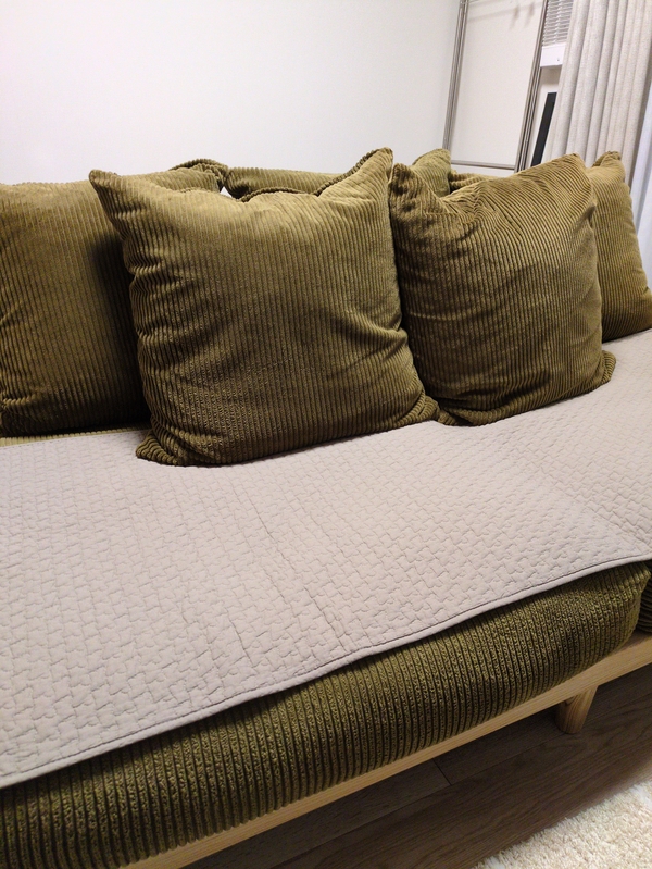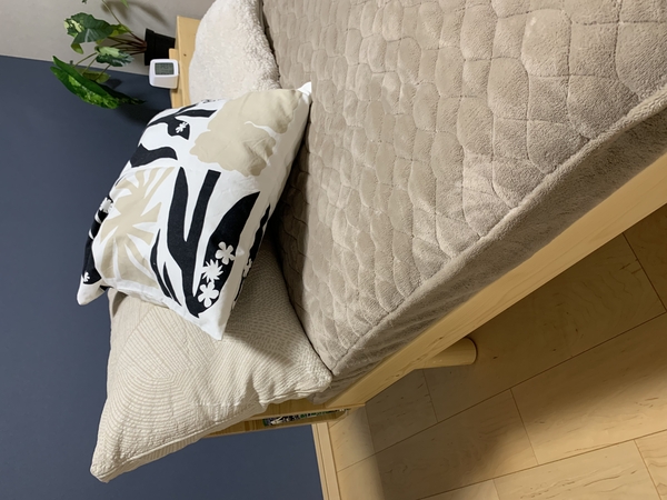 掛け布団カバーと枕カバーは、ムクムクシリーズのアイボリーにしたので、朝まで本当に温かくて嬉しいです!