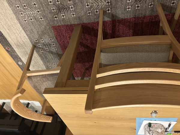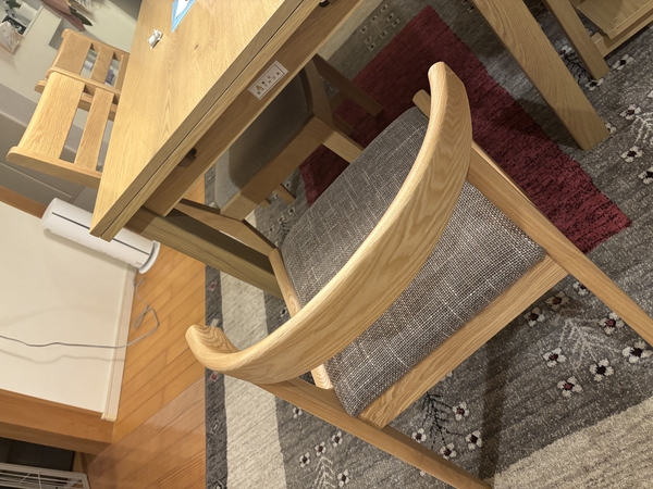 椅子はどうしても長時間座り、腰が悪いので飛騨家具さんのSEOTO-EX(ホワイトオーク材、WOカラー、セイブルIV)を合わせましたが、高さも雰囲気も違和感なくダイニングテーブルに馴染んでくれましたし、リセノさんのダイニングテーブルにぴったり納まります。