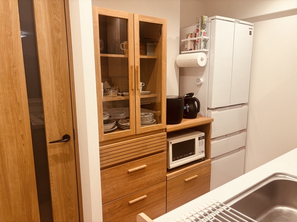 色味はブラウンでも良かったかなと思いますが、サイズ感もあり大きな存在なので、ナチュラルで床と同系色で主張が少ないくらいでちょうど良さそうかな。