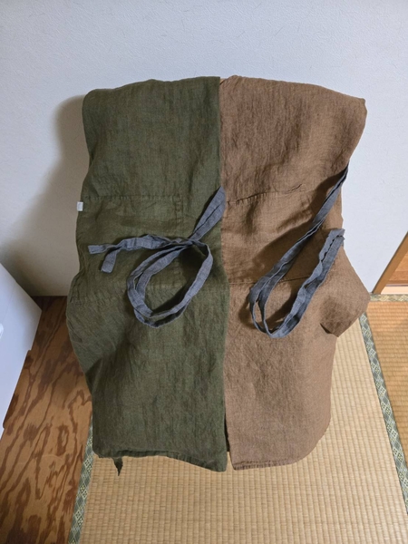このエプロンの素材は、リネン100%。リネンは天然素材の中でも、特に耐久性に優れています。濡れるほどに強さが増すので、気兼ねなくじゃぶじゃぶ洗っていただくことができます。