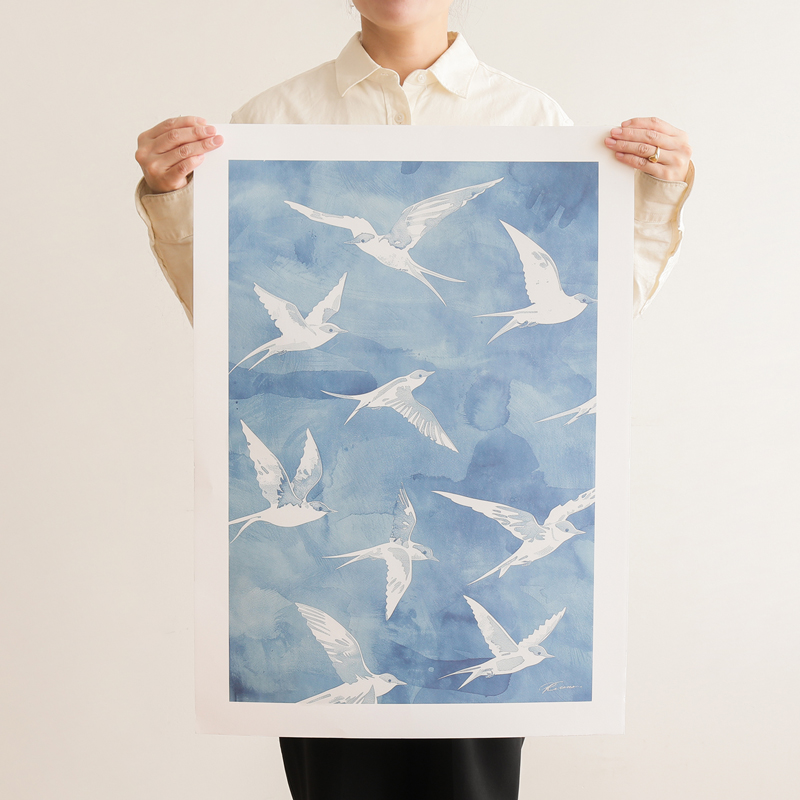 今回は、現在展開しているアートポスターの中でも特に人気の高い「50×70cm」と、気軽に取り入れやすい「ミニサイズ」をご用意しています。