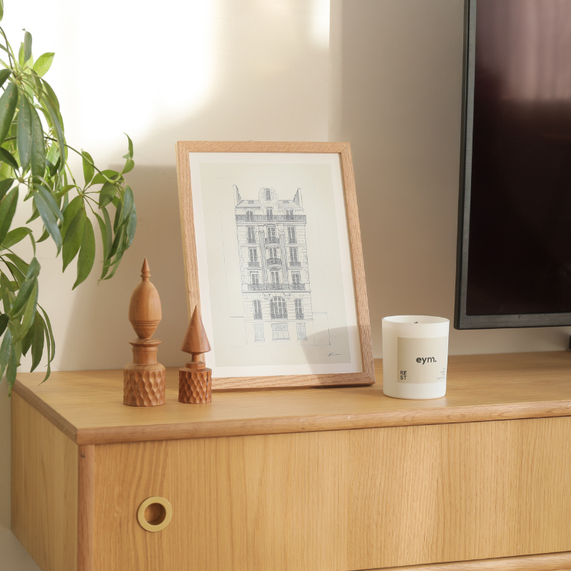 天然のオーク材を使用した美しいデザインで、アート本来の輝きを陰ながら支えます。