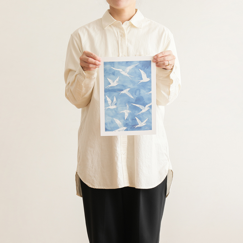 「A5サイズ」は、アートポスターとしてはかなり小さめ。ポストカードよりひと回り大きいくらいのサイズです。