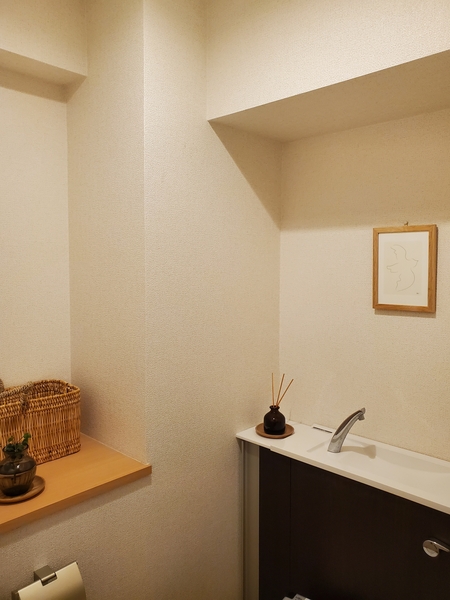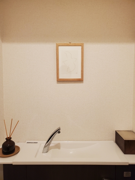 例えば、ぽっかりと空いたトイレの壁。アートポスターを取り入れることで、お店のトイレのような洗練された空間になりました。