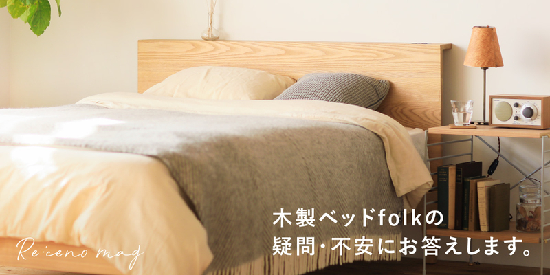 Re:CENOオリジナルベッド「folk」には、アッシュ材にクリアオイル塗装を施したナチュラルカラーもございます。