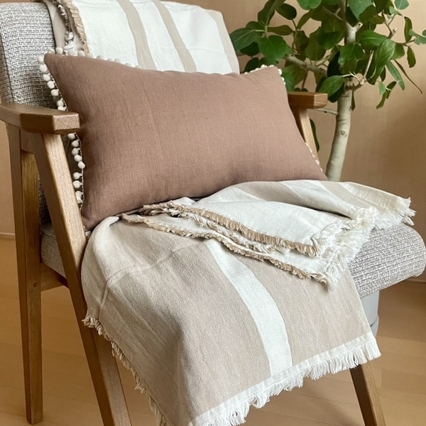 ソファーやチェア、ベッドまで、パッとかけるだけでサマになる爽やかなブランケットです。