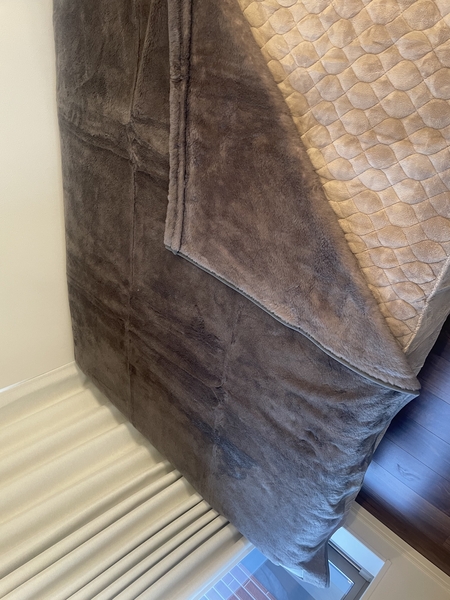 同じシリーズの敷き毛布もご用意しました。冬場は冷気が下からくると言われているので、それをシャットダウンしてくれる敷き毛布は重要な存在。
