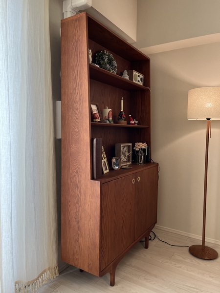 多くのシェルフキャビネットは、奥行き「40cm~45cm」ほどで、設計されています。シェルフキャビネットとして人気の「北欧アンティーク」も、ほとんどがこのサイズです。